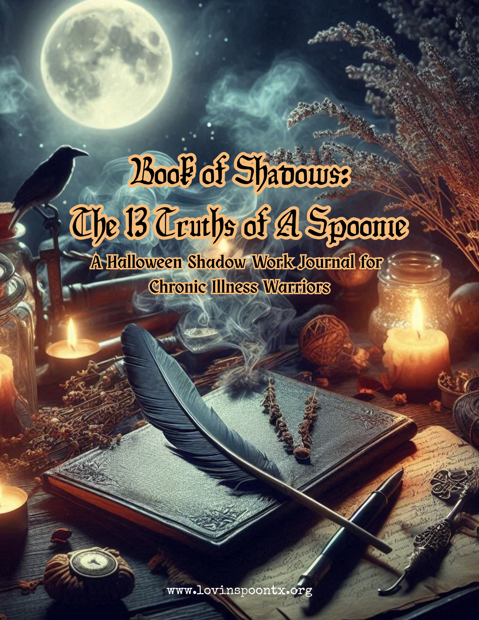 The Book of Shadows: The 13 Truths of a Spoonie is a guided shadow work journal created for those living with chronic illness. With a blend of dark, gentle truth-telling, and soul-deep prompts, this workbook helps you explore the hidden parts of yourself — the parts that are tired, fierce, angry, hopeful, and endlessly human.